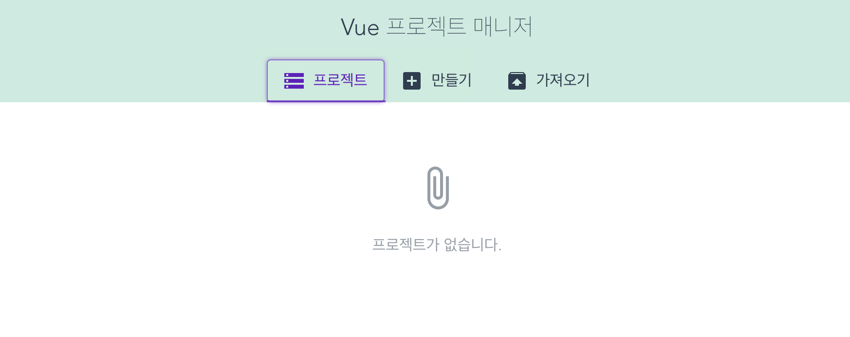 대부분 Vue 프로젝트를 생성할 때는 프로젝트 매니저를 사용하지 않고 직접 터미널 명령어 방식을 이용합니다. 해당 GUI 방식은 참고만 하면 될 것 같습니다.