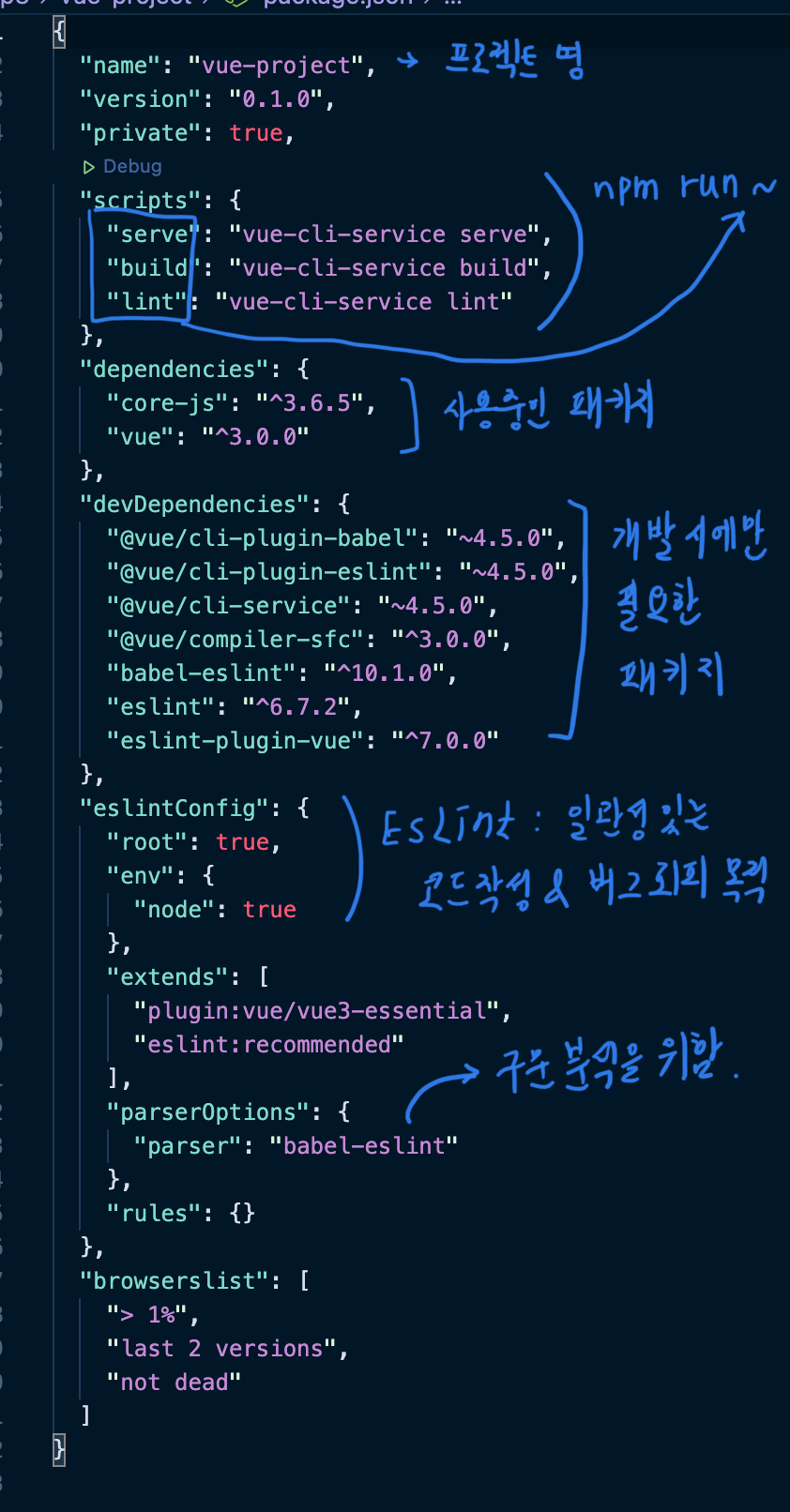 아래는 package.json 관련 파일에 대한 내용입니다.