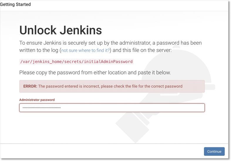 $ docker logs -f my_jenkins Jenkins initial setup is required. An admin user has been created and a password generated. Please use the following password to proceed to installation: b39b7b29425b4883952ae4bd9f3bde11- 방법 2. 도커 컨테이너에서 해당 경로(/var/jenkins_home/secrets/initialAdminPassword)에서 확인