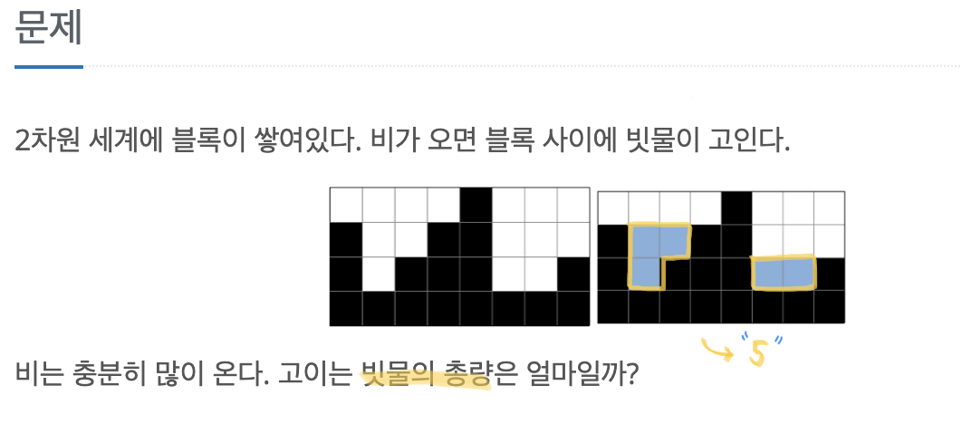 - 아래 그림과 같이 빗물의 총량을 구하기