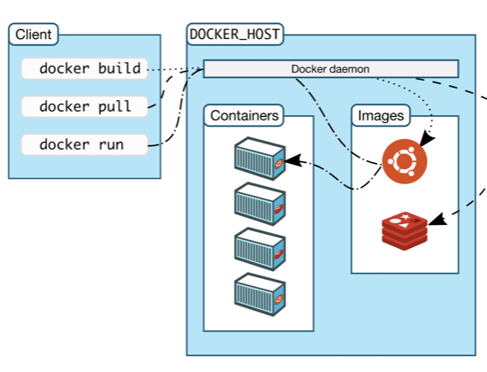 - server: 실제 컨테이너를 생성 및 실행하며 이미지를 관리합니다. Client가 명령어를 전달하면 Server가 명령어를 받아 실행합니다.