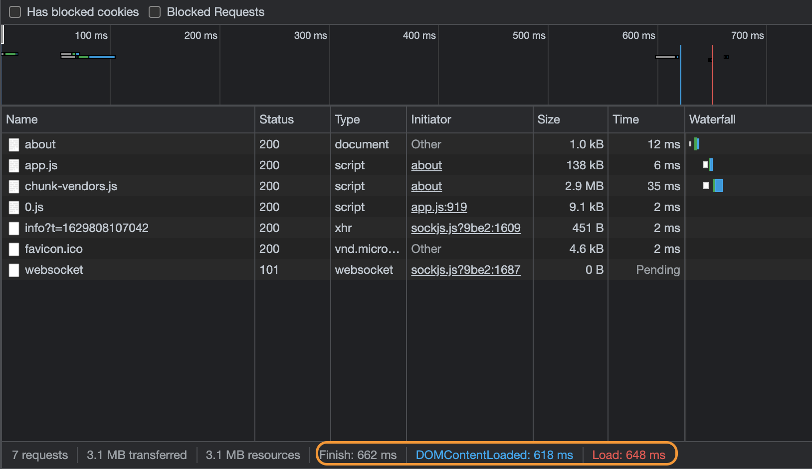 module.exports = { chainWebpack: (config) => { config.plugins.delete('prefetch'); } }3-2. prefetch가 제대로 제거되었는지 확인