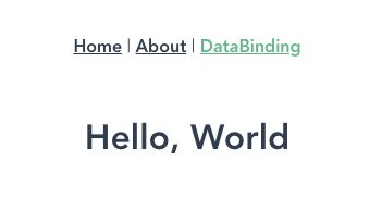 <template> <div id="app"> <div id="nav"> <router-link to="/">Home</router-link> | <router-link to="/about">About</router-link> | <router-link to="/databinding">DataBinding</router-link> </div> <router-view/> </div> </template>