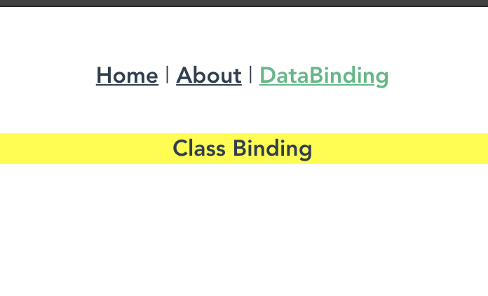 <template> <div id="app"> <div id="nav"> <router-link to="/">Home</router-link> | <router-link to="/about">About</router-link> | <router-link to="/databinding">DataBinding</router-link> </div> <router-view/> </div> </template>