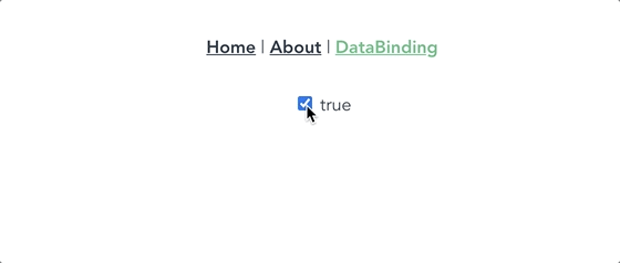 <template> <div> <label> <input type="checkbox" v-model="checked"> {{ checked }} </label> </div> </template> <script> export default { data() { return { checked: true }; } } </script>