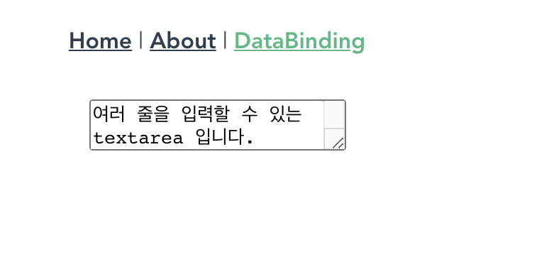 <template> <div> <textarea v-model="message"></textarea> </div> </template> <script> export default { data() { return { message: "여러 줄을 입력할 수 있는 textarea 입니다." }; } } </script>