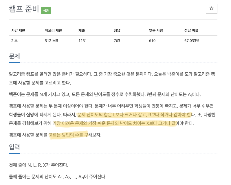 [Python] 백준 16938 캠프 준비알고리즘/문제풀이 2021. 9. 11. 21:35728x90