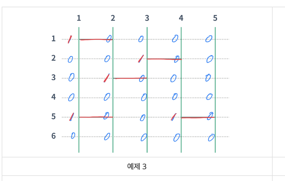 2. 만든 가로선으로 i번 세로선의 결과가 i번이 나오는지 체크한다.