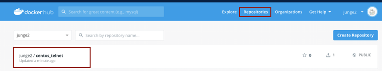 junge2/centos_telnet latest 257fc79abba7 24 hours ago 274MB