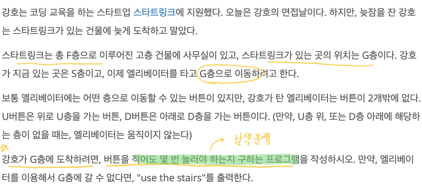 - S > G로 가기 위해 눌러야 하는 버튼의 수의 최솟값을 찾는 문제 → 탐색 문제