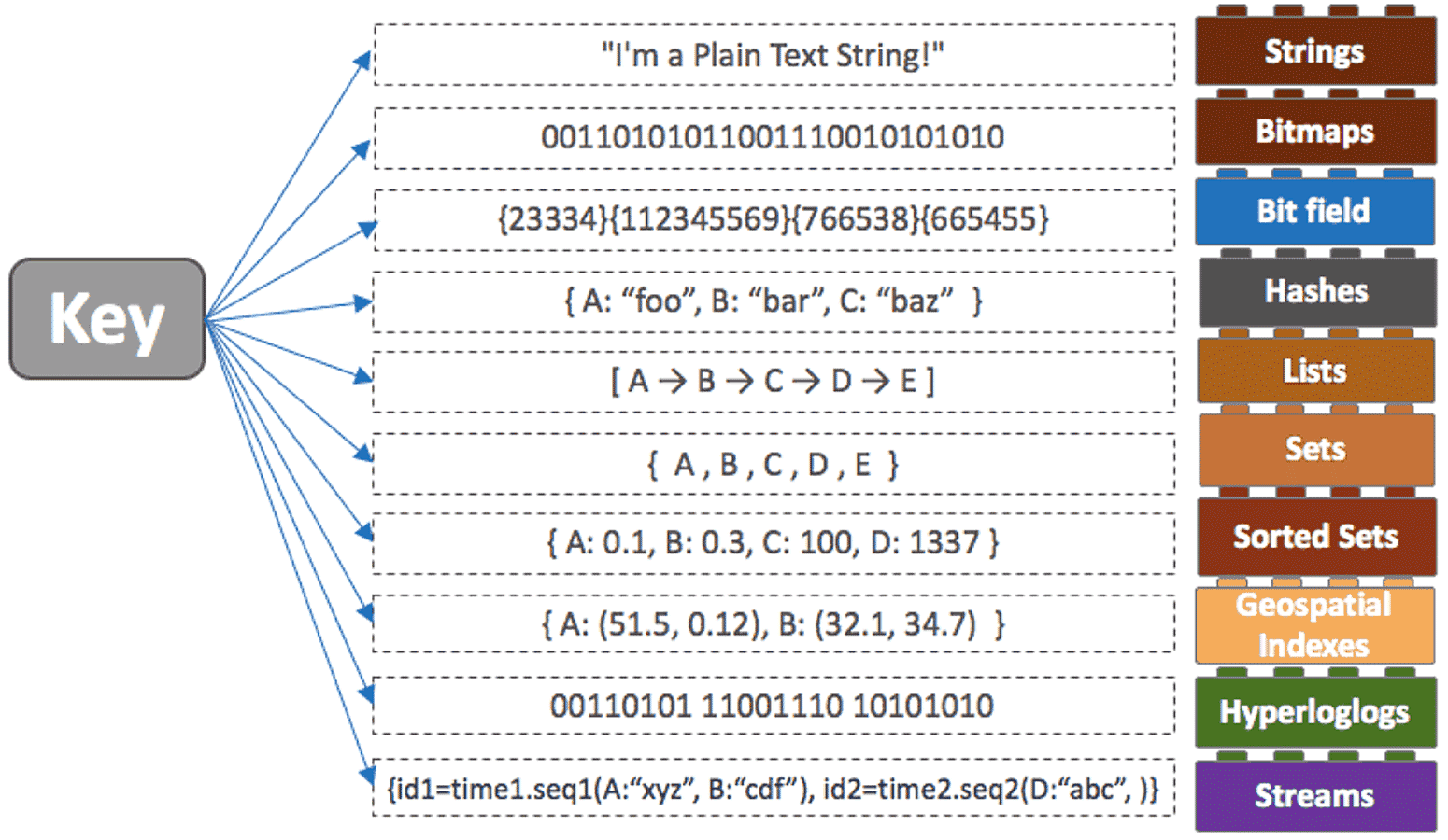 redis는 아래와 같이 다양한 자료구조를 가지고 있습니다. 그중 가장 자주 사용되는 String, Hash, List, Set, Sorted set에 대해 알아보겠습니다. 여기서 다루지 않은 명령어들은 redis 사이트에서 확인할 수 있습니다.